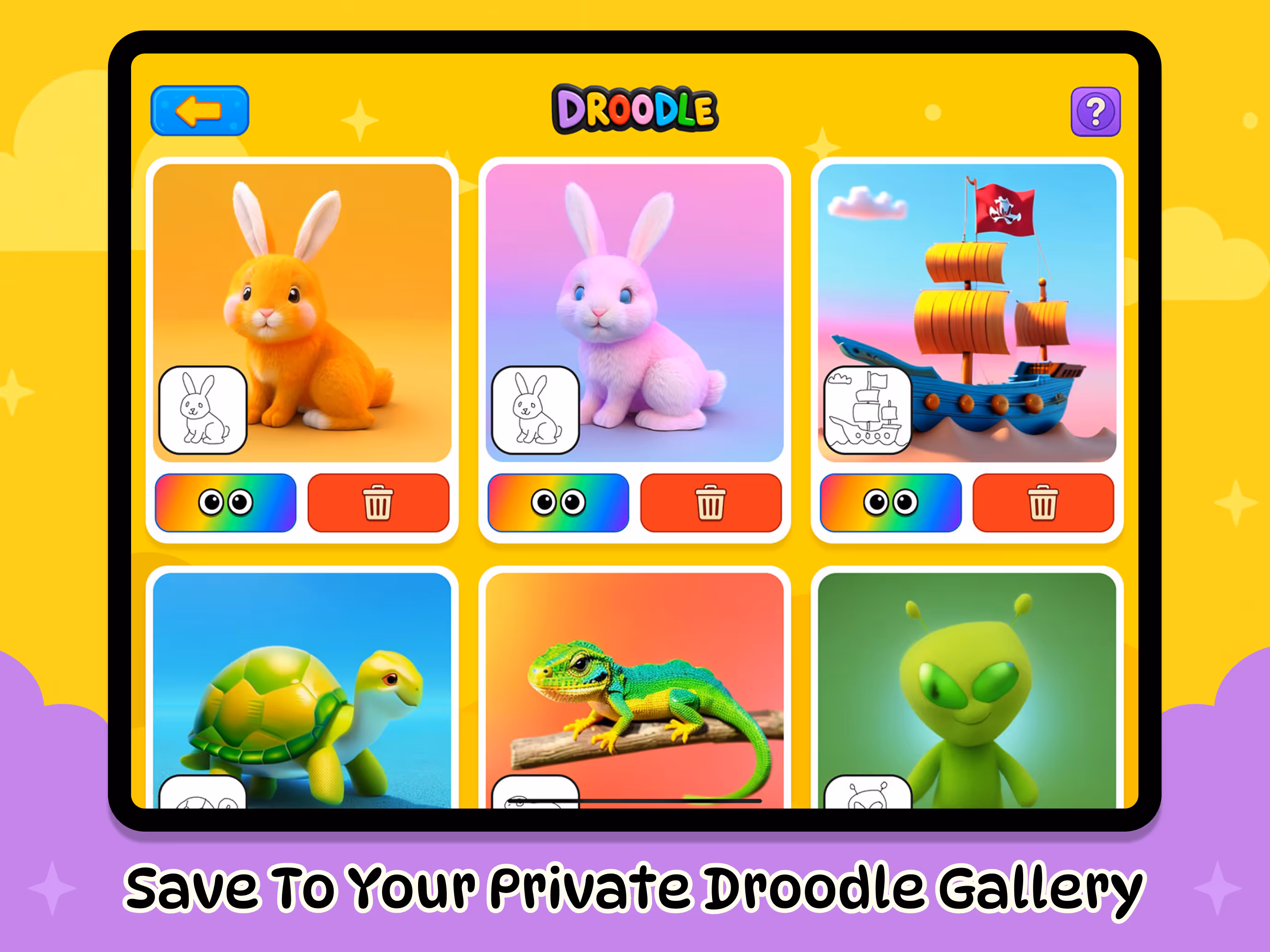 Every user starts with 10 Free Magic Creations - no sign-up, no payment, no personal information required. Just download Droodle and let the creativity begin!